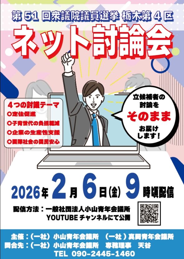 この度小山青年会議所と共催で衆議院議員選挙のネット討論会を行う運びとなりました!